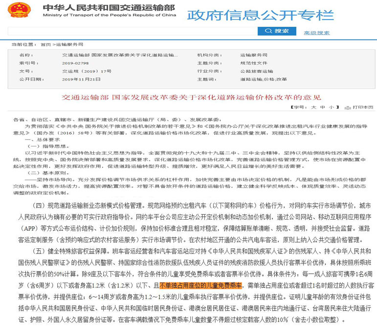 特別注意:道路交通安全法實施條例規(guī)定,在客車滿載情況下免費乘車兒童數(shù)量不得超過核定載客人數(shù)的10%。9座以下客車在滿載情況下無法攜帶免票兒童,因此兒童免票乘車規(guī)定不適用9座以下客車。